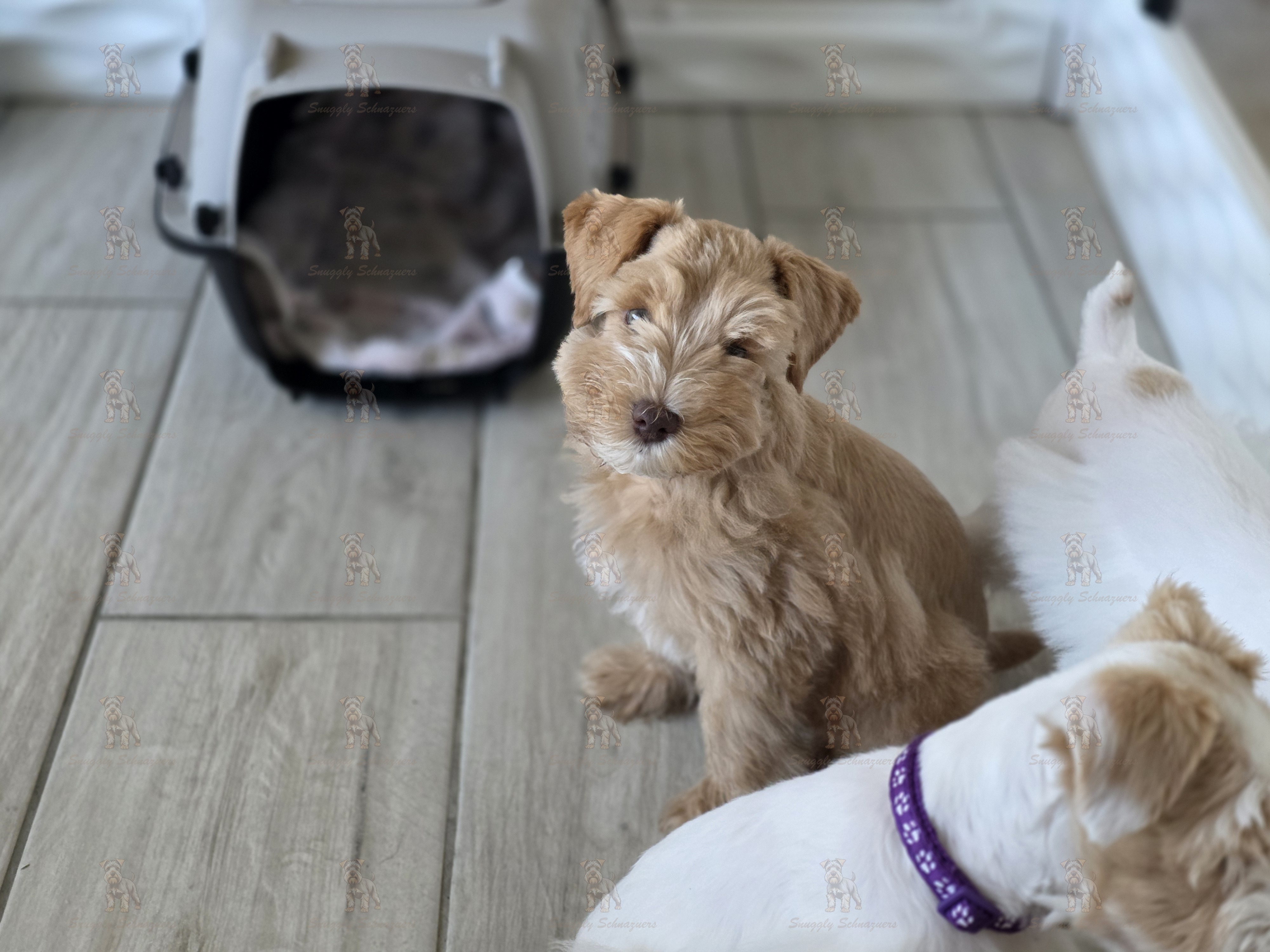 At Snuggly Schnauzers, we start this process early so your puppy comes home already familiar with their crate — setting the stage for a confident, well-adjusted companion.